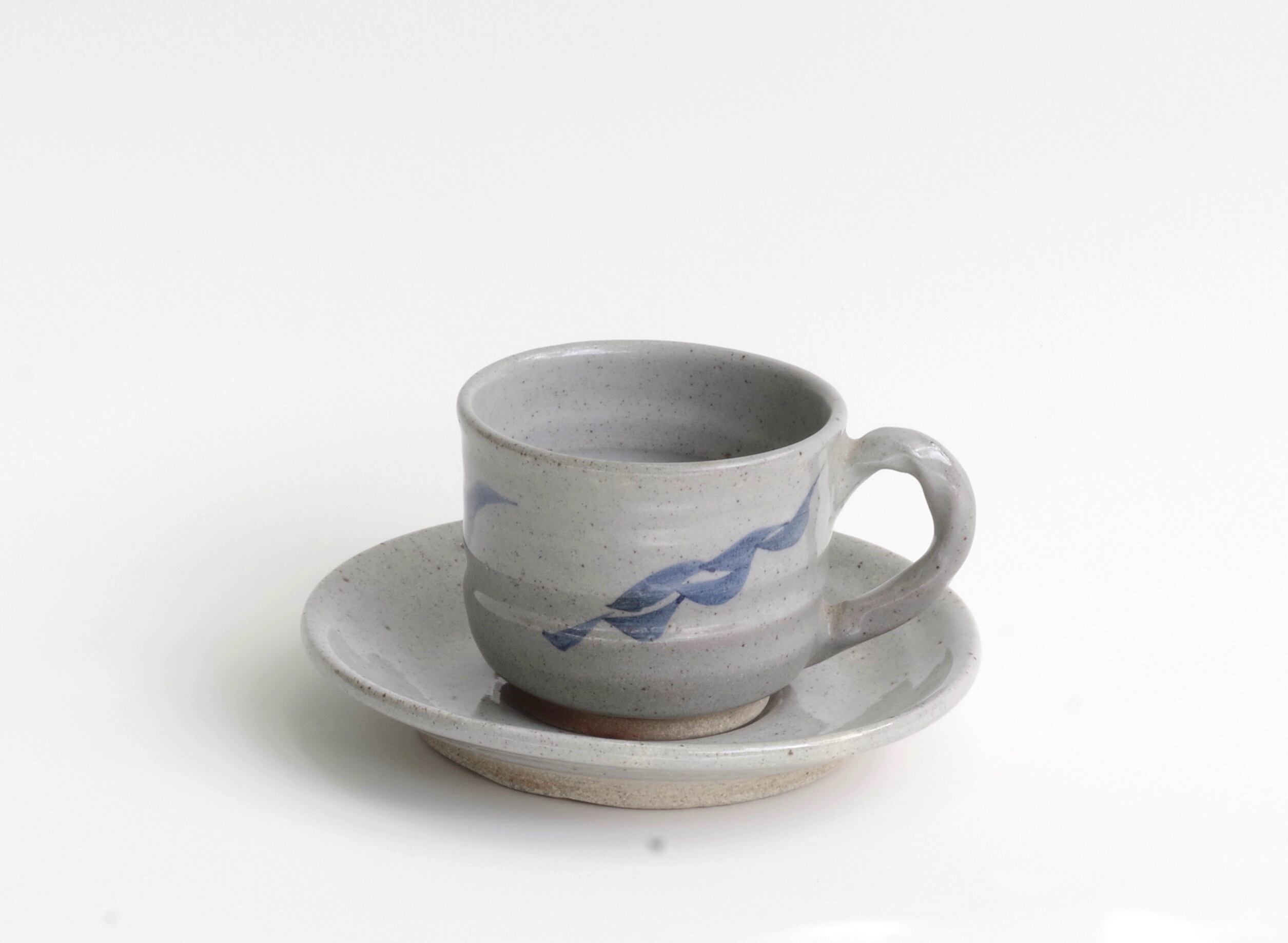 商品18ーA 亜鉛華釉絵付けコーヒー椀皿 | 亜久亜工房森水窯 岩手県岩泉町の登り窯陶器工房